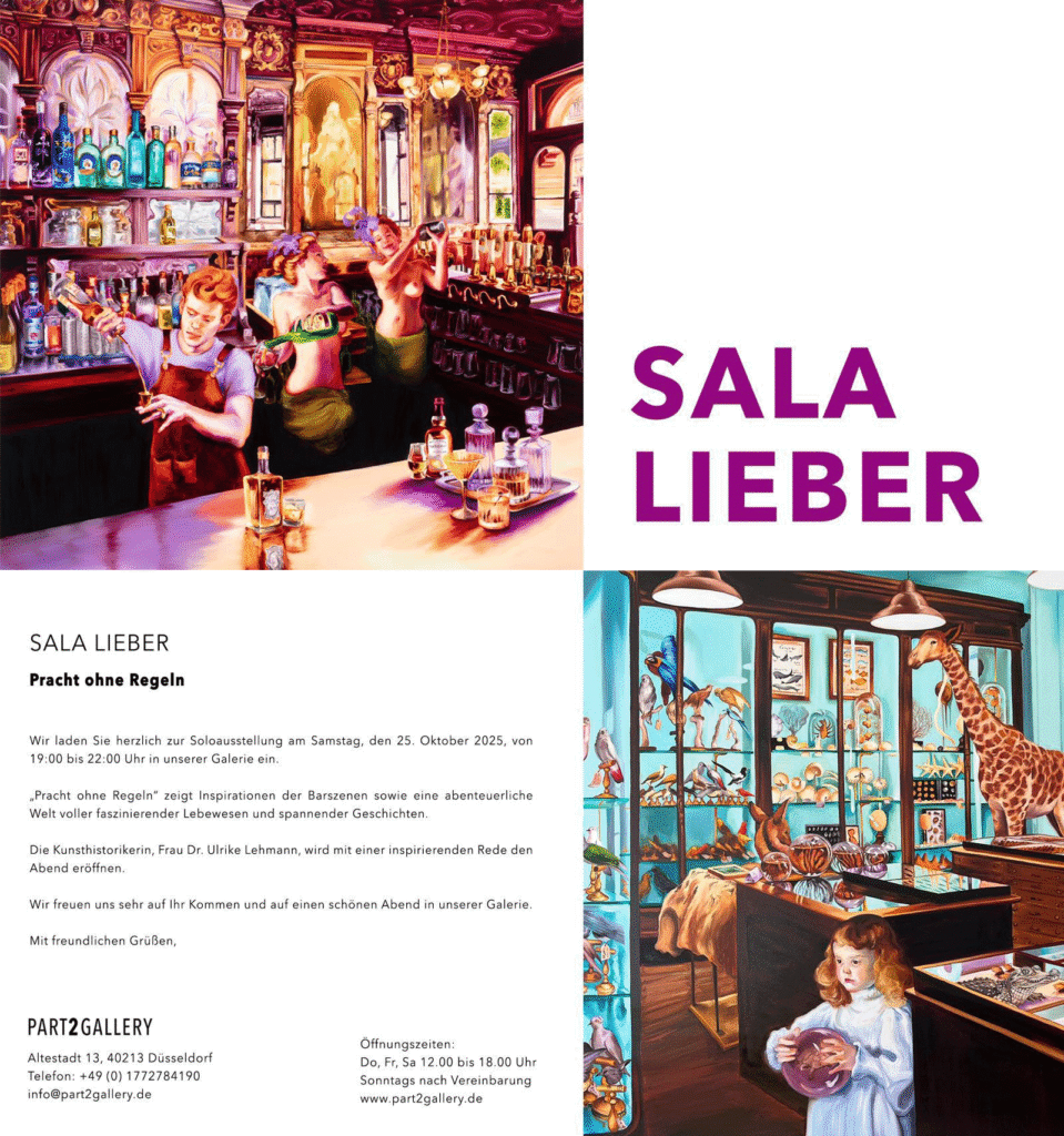 Hiermit lade ich Sie zur Eröffnung am Samstag, den 25. Oktober 2025, von 19:00 bis 22:00 Uhr in die PART2GALLERY ein.